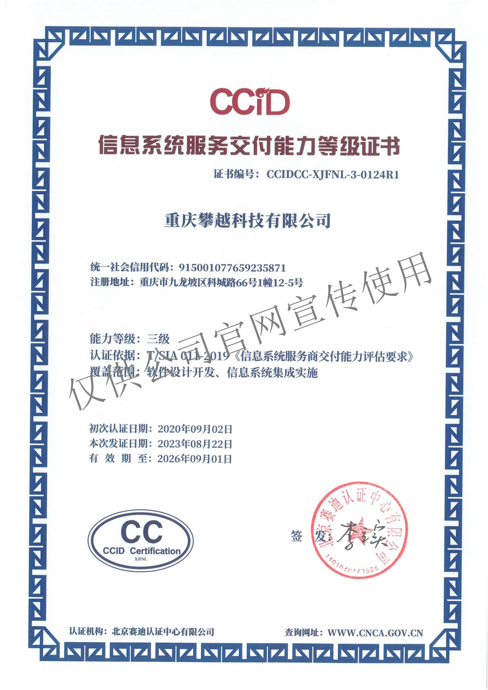 信息系统服务交付能力等级叁级